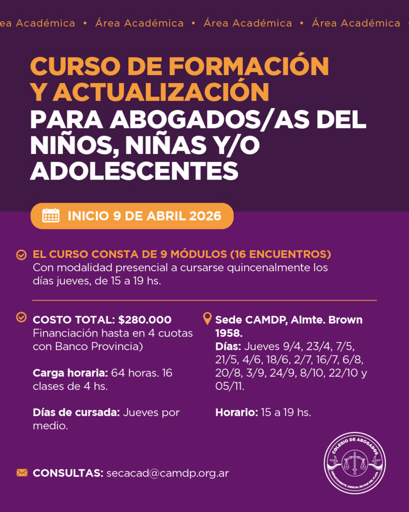 CURSO DE FORMACION Y ACTUALIZAION PARA ABOGADOS/AS DE LOS NIÑOS NIÑAS Y ADOLESCENTES